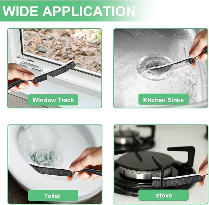 - 【Widely Usage】A tiny brush solve big mess. Shower cleaner brush is designed to clean narrow crevices, such as minute gaps beside the stove, window tracks, sliding door crevices, kitchen, home, bathtub, bathroom, dish, window, vehicle, faucets, toilet, grout, floor and other places, meet your different cleaning needs.