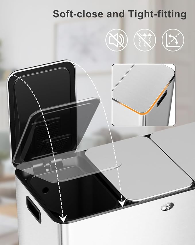 - [Odor Seal] The lid of the trash can effectively prevents odors from escaping, keeps pests out, maintains a tidy appearance, and supports efficient waste sorting