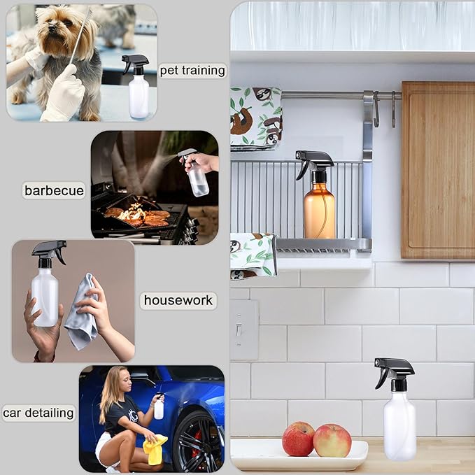 - Versatile Applications: These household essential squirt bottles for liquids are great for spraying water and other liquids. Use them for watering plants, hair care, cosmetics, cat or dog training, baking, barbecuing, cleaning, laundry, and car detailing. Create your own DIY cleaner in a convenient mist sprayer bottle!