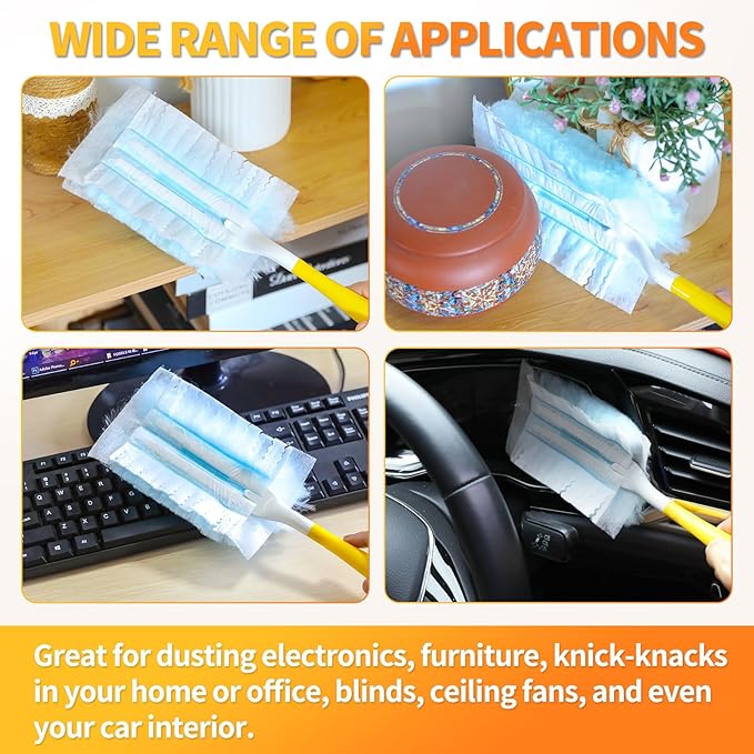 - Cost-Effective Dusting Tools: The package includes 30 duster refills and a duster short handle.After opening the bag, shake it slightly to make the Dust Refills fluffy before Use