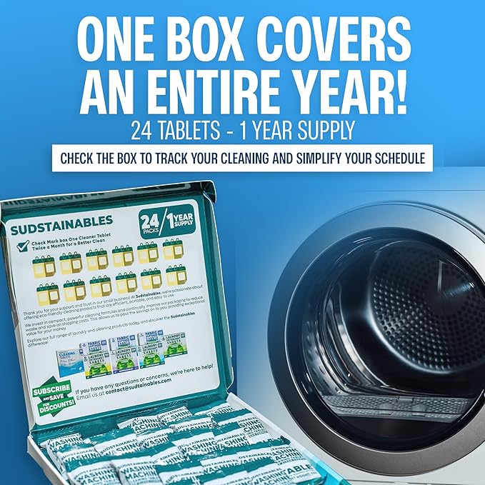 - 1 Box = 1 Year Supply – With 24 washer machine cleaner tablets, your machine stays at peak performance all year. Buy once and enjoy 12 months of effortless freshness.