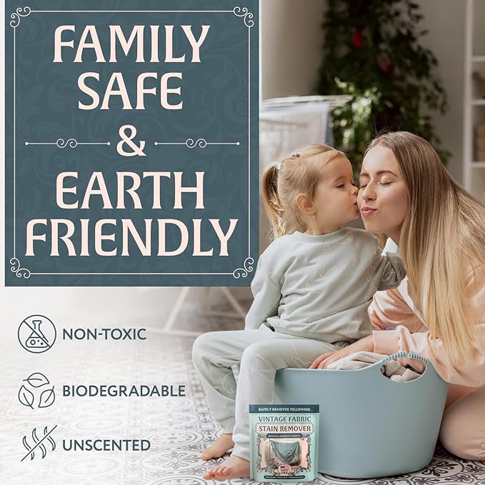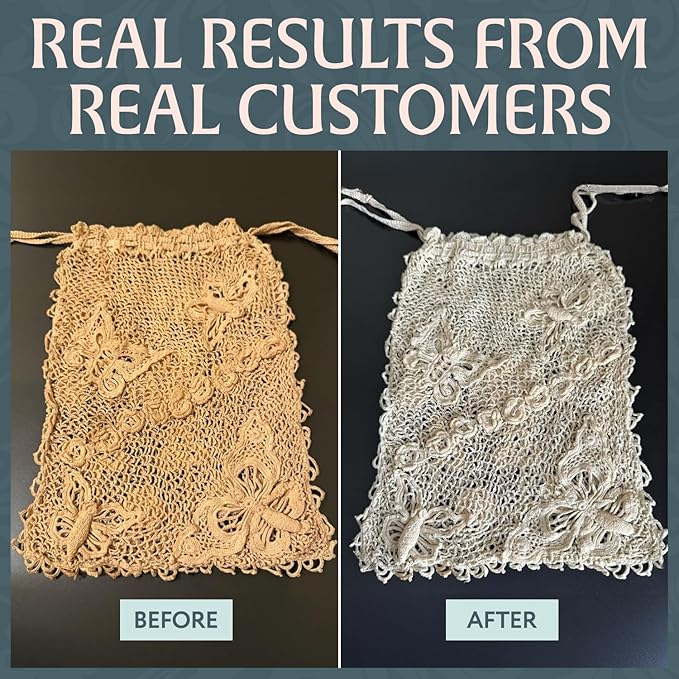 - SAFELY RESTORES ANTIQUE FABRICS - Gentle on colors and fibers yet effective against decades of yellowing and stubborn stains like wine and coffee in family heirlooms. Perfect as a retro clean vintage soak for quilts, this fabric restorer revives vintage dresses, lace doilies, delicate textiles, and more