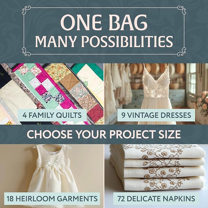 - MAKES 18 GALLONS OF SOAKING SOLUTION – Each bag makes enough restoration fabric cleaner to bring new life to entire collections of family treasures—clean up to 4 cherished quilts, 9 heirloom tablecloths, or 72 vintage napkins