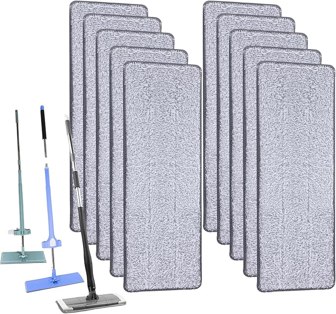10 Pcs Flat Mop Pads, 13" X 4.7" Microfiber Mop Cleaning Pads, Microfiber Mop Pad/Refill/Head, Mop Pads Washable, Pads Replacement for Flat Mop or Mop Bucket Set