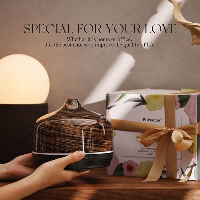 - UNIQUE ART DECOR - 500ml glass essential oil diffuser with star-shaped glass cover & wood grain base. Adds artistic harmony to your living space, perfect for bedrooms, living rooms, kids' rooms, studies, offices, & yoga studios. Enhances ambience