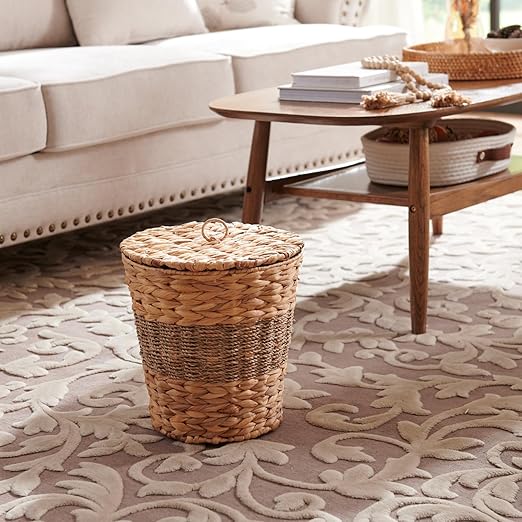 - Natural Material: Carefully handwoven from FSC-Certified rattan, this wicker trash basket combines water hyacinth and seagrass fiber, adding an eco-friendly charm to your space while seamlessly blending sustainability with everyday functionality.