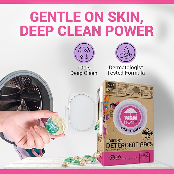 WBM Home Laundry Pods, Total 128 Count | Specially Designed for Undergarments With Soft Heaven Fragrance | Laundry Detergent Pods Formulated With Plant-Based Formula and Gentle Stain Remover
