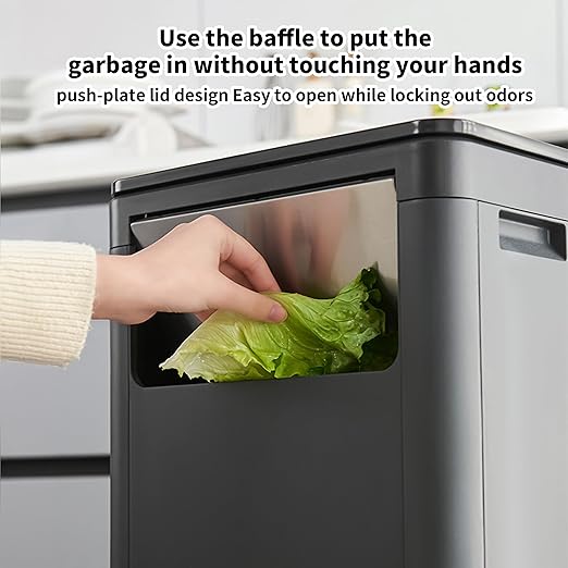 - [Soft-Close, Odor-Sealing Lid] This kitchen trash can features a slow and quiet soft close lid. The tight seal of the lid prevents lingering odors