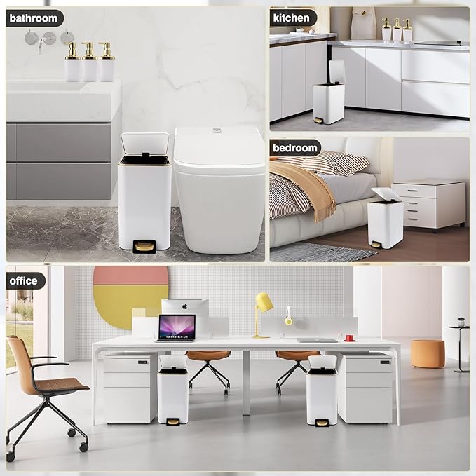 - [Sturdy Steel Pedal]: Upgrade foot pedal of the bathroom trash can combines stainless steel tread with plastic material, making a lighter and more comfortable pedaling experience.Engineered to last over 150,000 steps, allowing you to step more than 20 steps a day for 20 years