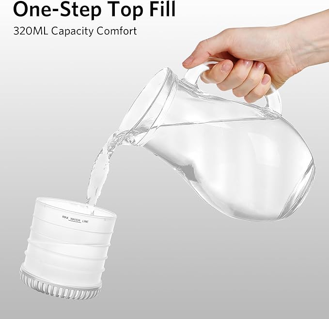 - Large 320ml Capacity for Extended Use: Enjoy up to 8 hours of mist without frequent refills. The spacious 320ml water tank is ideal for use in bedrooms, offices, nurseries, or yoga rooms.