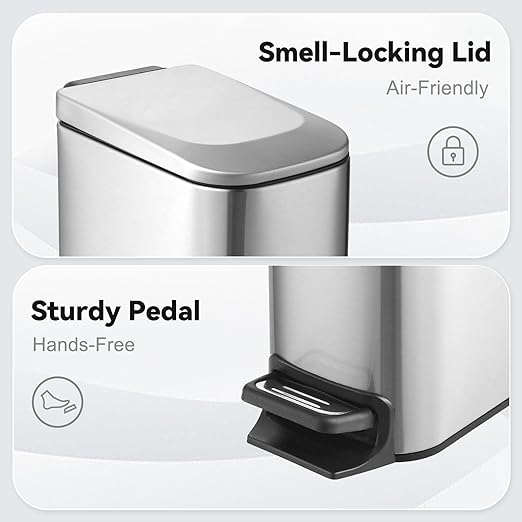 - Step Pedal: The step pedal allows you to open the lid with a simple press of your foot, offering a hands-free way to dispose of waste. This feature is especially convenient when your hands are occupied or messy, ensuring you can keep your space clean without ever needing to touch the trash can
