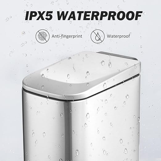 - Sleek & Sturdy Stainless Steel: Crafted from high-quality stainless steel, this trash can offers both elegance and durability. The smooth, rust-resistant material is designed to withstand daily use, while maintaining its clean, polished look over time. It resists stains, smudges, and fingerprints, keeping your space looking fresh and tidy with minimal effort