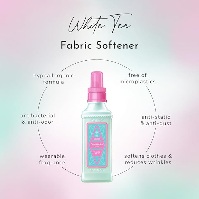 - LUXURIOUS LAUNDRY SOFTENER - Elevate your laundry experience with Laundrin Laundry Softener White Tea, offering a delicate and clean aroma. This eco-friendly fabric softener liquid not only reduces static and wrinkles but is also safe for your health & household, including those with sensitive skin, babies, and pets.