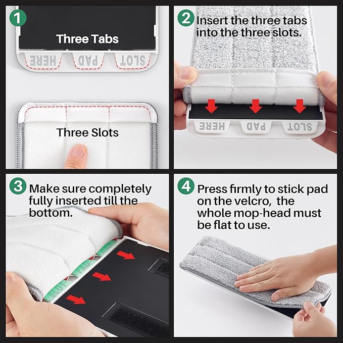 - [Washable Microfiber Cleaning Pads] Applied to 15.0 × 4.9" Mop-head. 3 microfiber mop pads refills come with this set. Strong water absorption let you easily do any wet and dry cleaning. To keep usability, recommend to replace pad refills every 1-2 months up to use frequency