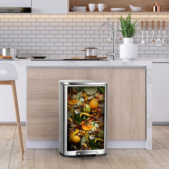 - Large&Enduring Foot Pedal: Stainless trash can features 5.9" wide pedal, providing a comfortable stepping surface, making it effortless to open the lid. It is crafted from sturdy stainless steel ensuring smooth and reliable operation for years to come