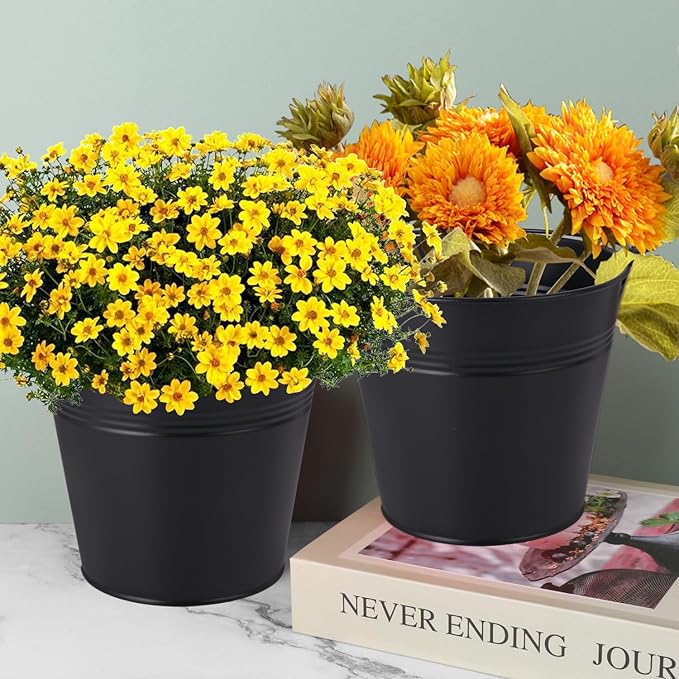 - 【Premium Black Finish】 Adorned with a elegant Black baking paint finish, these Small Metal Buckets showcase an elegant, timeless appeal that effortlessly enhances any setting.