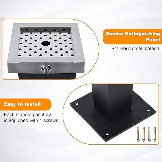 - Easy To Install: The trash can features an enlarged stable base design and comes with 4 screws to secure it in place. By threading the screws through the 4 mounting holes in the base of the trash bin, it can be firmly anchored, making it resistant to being knocked over by people or wind