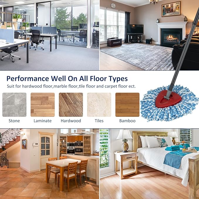 - 【Suitable for Various Floor Type】 The mop heads replacement can work with smooth surface floors, such as wooden floors, ceramic tile, laminate floors, marble floors, hardwood floors, glass floors, smooth stone and other sealed hard floors. It can also can use for washing your car.Besides,the dry mop can also be used to clean walls or other places covered with dust efficiently.