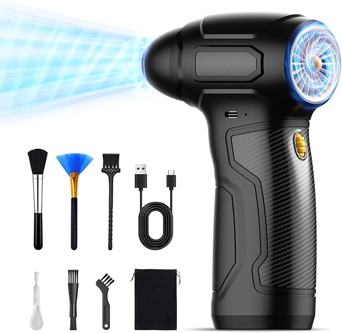 - 【Superior Air Duster Performance】Electric air duster is powered by a high-performance motor reaching up to 200,000 RPM, delivering an incredible wind speed of 72 m/s and a wind pressure of 220g. It effortlessly blasts away dust and debris from keyboards, PCs, and other electronic devices, providing an unparalleled cleaning experience.