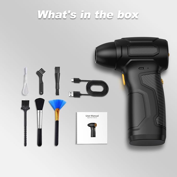 - 【2H Fast-Charging Electric Duster】Equipped with an 8000mAh rechargeable battery, this electric air duster supports fast charging in just 2 hours. Once fully charged, it provides extended usage time to handle multiple cleaning tasks with ease. The battery includes safety features like overcurrent, overvoltage, and temperature protection for worry-free use.