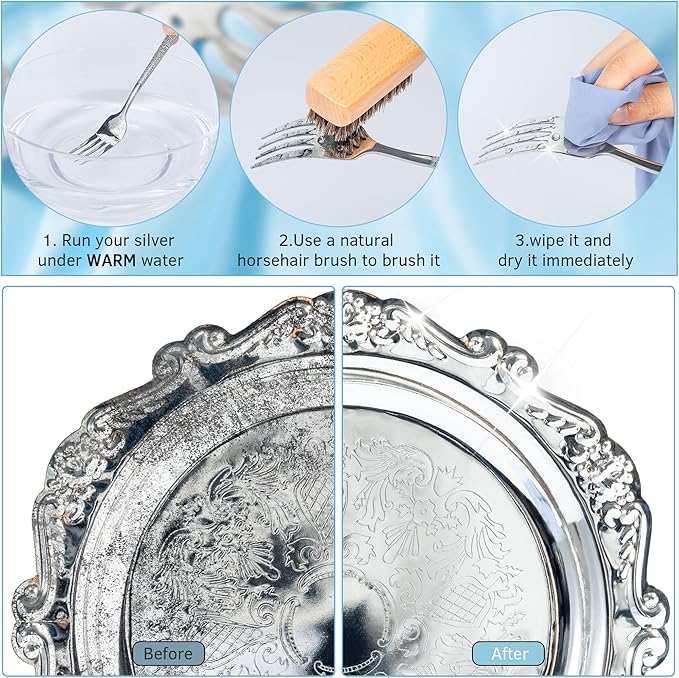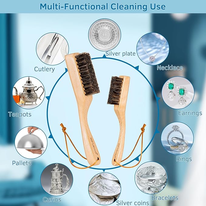 - Sparkling Your Silver: Is your silverware or silver jewelry still rusting in the box? You've come across a great helper who can make it shine again. These horse silver brushes can remove the trash and dust of your silver. This brush set leans and polishes better than a rag or sponge. They allow you to clean all uneven areas thoroughly