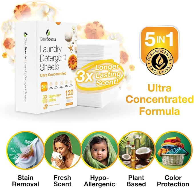 CleanScents Laundry Detergent Sheets (120 Sheets) (Summer Bliss)