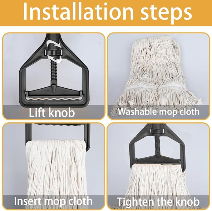 - 【Super Absorbent Cotton Mop】Our commercial mop heads are made of premium quality cotton material,which are soft and super absorbent.They can quickly absorb the water stains and take away the dirt on the floor surface. Additionally, the yarn tail band prevents loops from tangling and reduces fraying.They are both machine and hand washable.