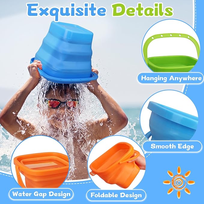 - Super Value Combination: The sand molding set toy includes 3 beach buckets that are abundant and colorful, the bucket can hold over 1 gallon of water and features a not-easy-to-splash design. One set includes everything you need. Explore new ways of beach and storage, accompany your babies growth.