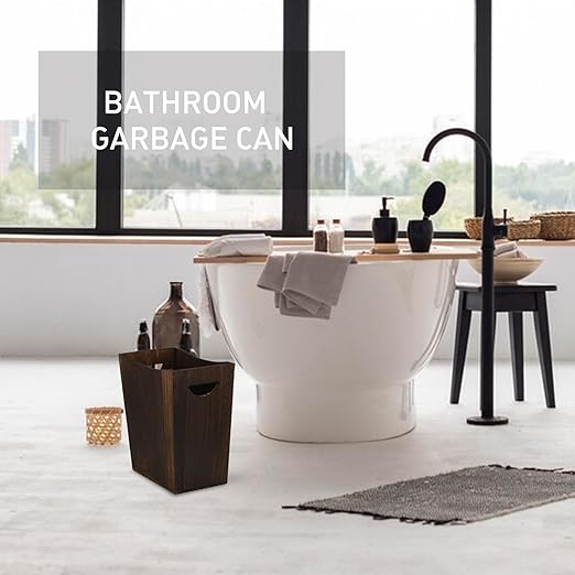 - BATHROOM TRASH CAN. Make your bathroom more sophisticated and more chic by replacing those cheap plastic trash cans or clunky metal bins in your bathroom with these wood trash cans.