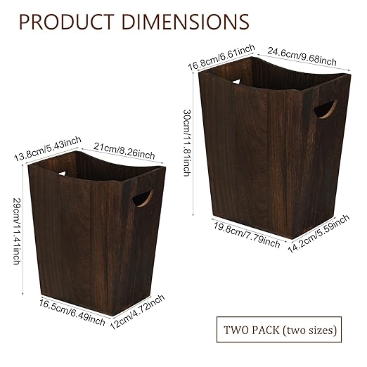 2 Pack Trash Can Wood Waste Basket Wooden Garbage Bins Decorative Farmhouse Trash Can for Bathroom Bedroom Office Desk Living Room (Distressed Brown)