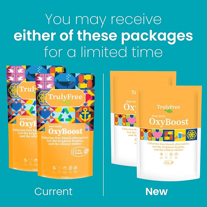 Truly Free OxyBoost - Oxygen Whitener & Clothes Stain Remover Laundry Detergent Powder with Sodium Percarbonate - Brightens Whites & Safe for Colors - Non-Chlorine, Gentle Yet Powerful - Pack of 2