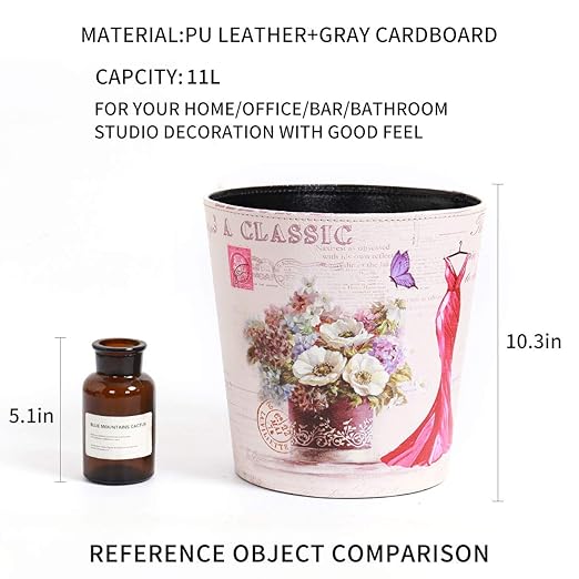 PU Leather Small Trash Can Wastebasket, Round Garbage Container Basket for Bathrooms, Laundry Room, Kitchens, Offices, Kids Rooms, Bedrooms,Dorms,Home Decorative Art Bin, 2.9 Gallon(Red Dress)