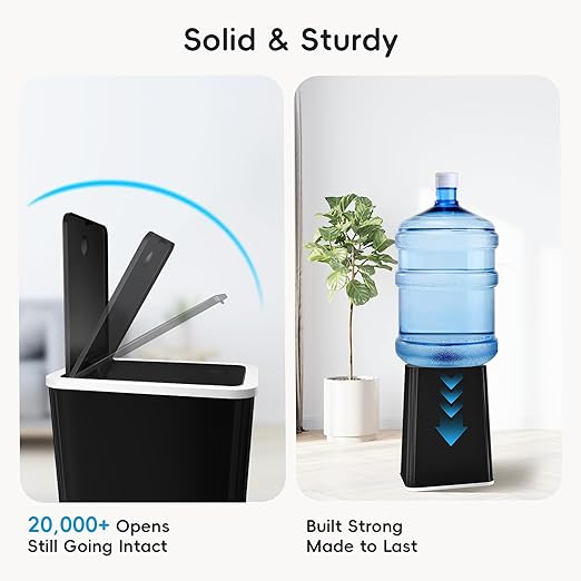 - Smart Protective Design: The lidded design not only effectively contains odors but also prevents accidental spills, making it ideal for households with pets. Trash can with lid has undergone rigorous spring testing, remaining as good as new after over 20,000 open-close cycles.