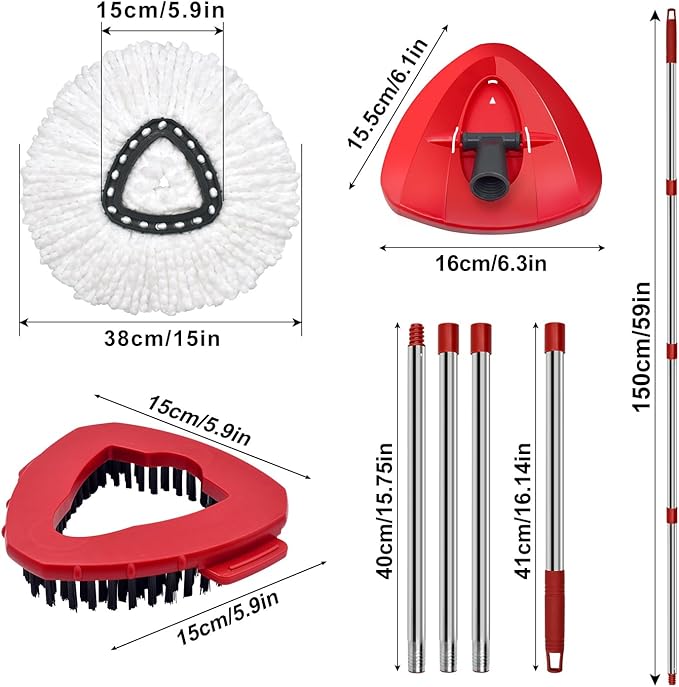 - 【Reusable & Easy to Install】- The spin mop heads can clean and deep clean in 360 degrees without any corners, sweeping away garbage in every corner.The spin mop replacement handle and base are easy to install, firm and not easy to fall off, use the same as the original, to provide you with a relax cleaning experience.