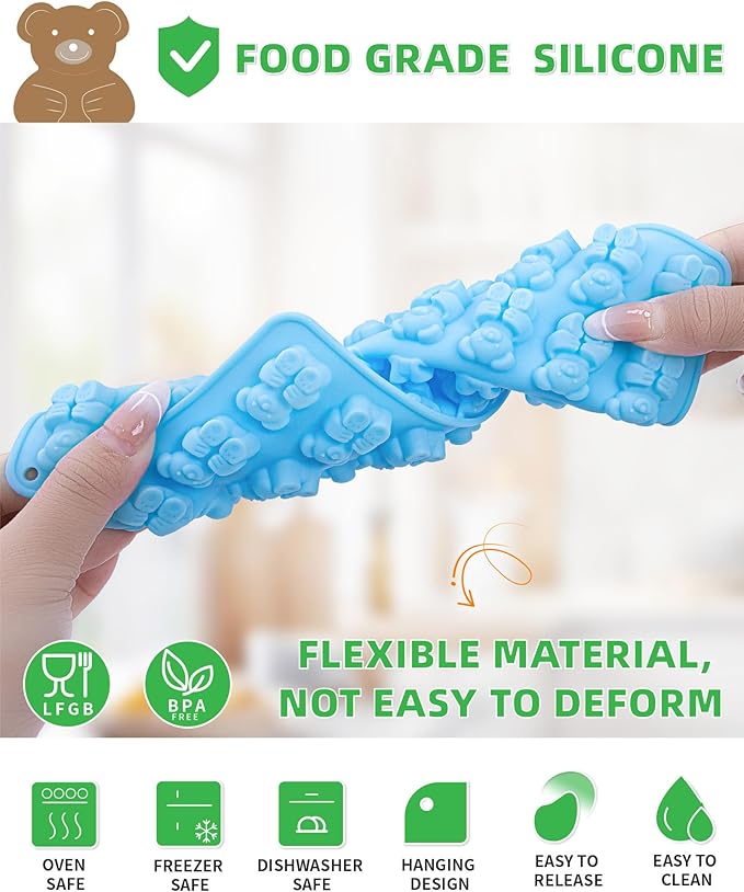 - FOOD-GRADE SILICONE MATERIAL: Crafted from carefully selected food-grade silicone, BPA free, no odor, and certified by LFGB, the silicone molds for food ensure safety and quality. They suitable for microwave, oven, refrigerator. It can be used to make gummies, chocolates, ice cubes, jellies, hard candies, pet treats, and even wax melts.