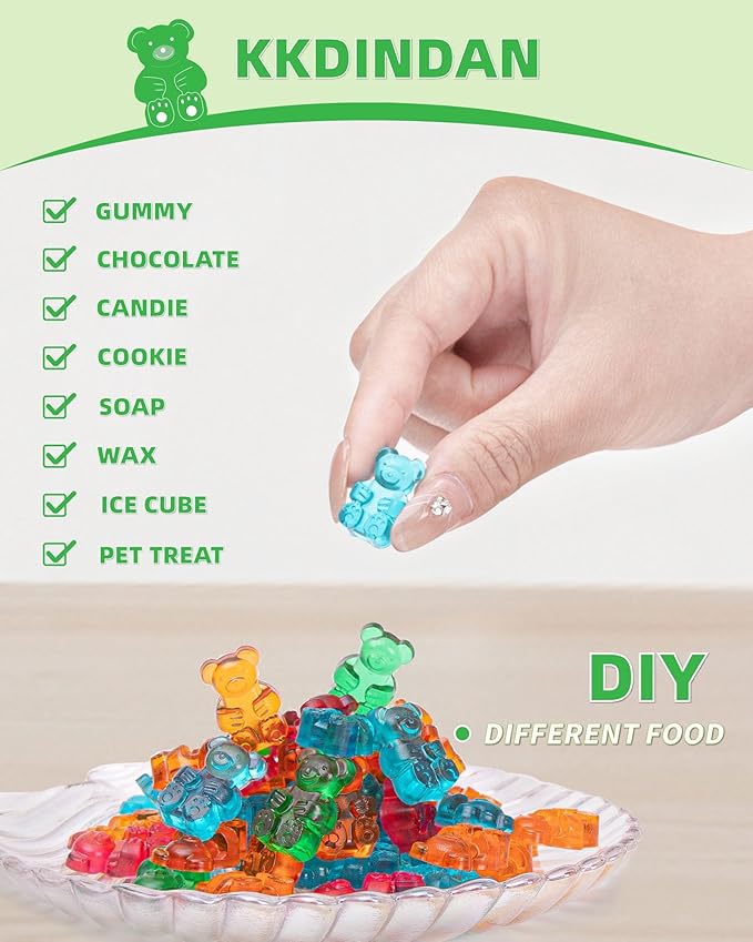 - 4PCS CANDY MAKING SET: Includes 4 bear-shaped silicone molds and 2 droppers of 5ml and 1 clean brush, allowing you to create a total of 180 2ml bear candies in one go.