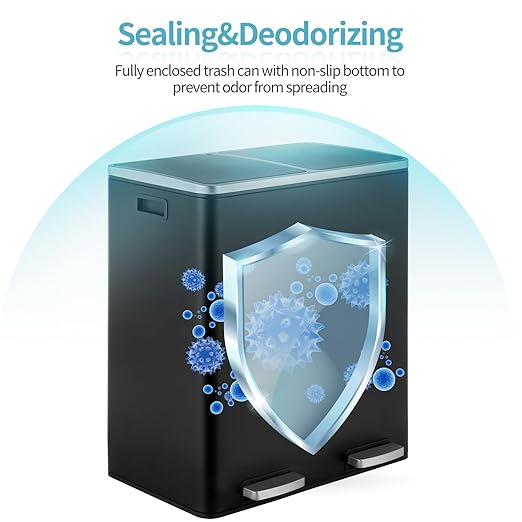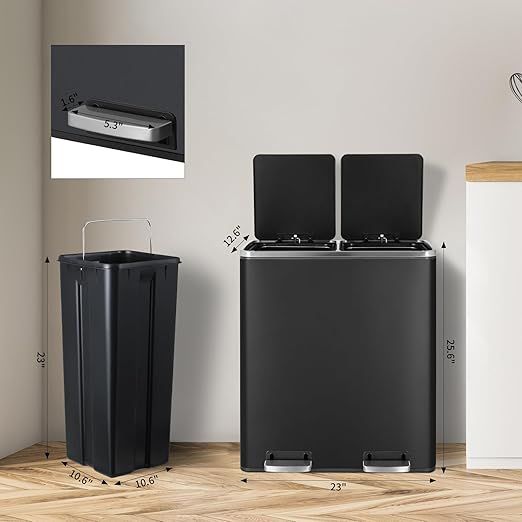 - 2×8-Gallon Compartments: 16-gallon step trash can has two compartments, combining garbage and recycling. Completely separated dual garbage and recycling can also avoid the smell of garbage. 2 removable inner buckets increase convenience