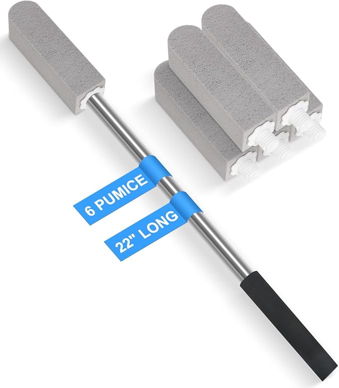 - A Must Have for Cleaning - Package comes with 1 stainless handle and 6 pack pumice stone. Ideal long cleaning brush for remove hard water rings and stains, help you keep your home clean. An essential for bathroom, kitchen, garden, toilet, ceramic surface accessories