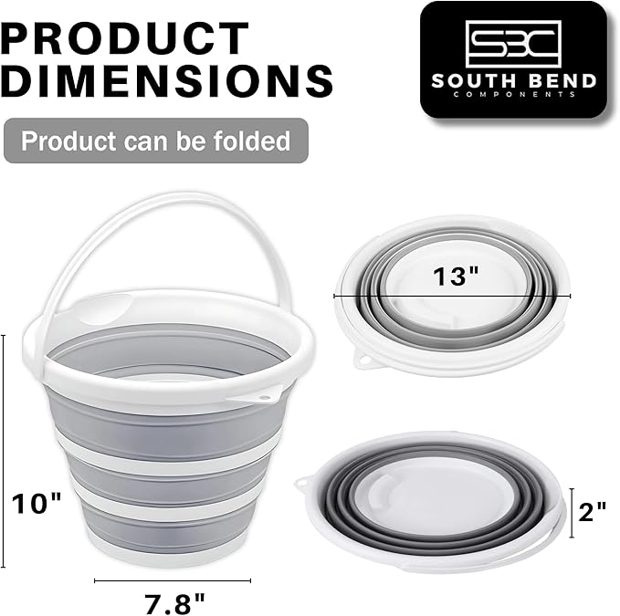 South Bend Components 2.6 Gallons Collapsible Bucket with Handle, Space Saving Design Portable Foldable Water Pail for Indoor/Outdoor, Mop, Boating, Camping, and Fishing (1-Pack)