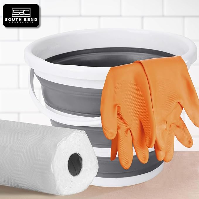South Bend Components 2.6 Gallons Collapsible Bucket with Handle, Space Saving Design Portable Foldable Water Pail for Indoor/Outdoor, Mop, Boating, Camping, and Fishing (2-Pack)