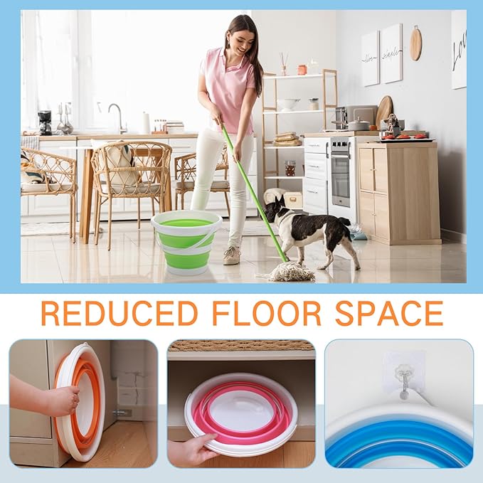 - Compact Convenient: bid farewell to clunky cleaning tools! Our collapsible bucket with handle can fold up when not in use, saving you precious space; Sporting a smart design, the bucket swiftly unfolds to store water or any other liquids when in use