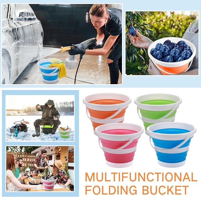 - Versatile and Highly Useful: our 4 pack autumn camping collapsible buckets are ingeniously designed to help maintain cleanliness in every corner of your home; Ideal as a bucket or a bucket for cleaning anywhere within your living space