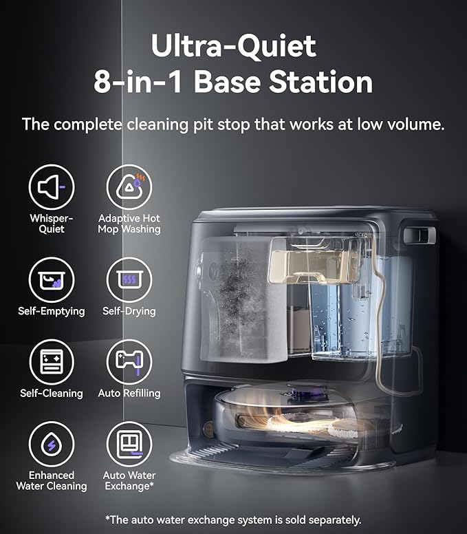 - Special Feature : Robot Vacuum and Mop Combo, AI-Powered Obstacle Avoidance, Precision Navigation, MopExtend & EdgeSwing, Corner Reverse Cleaning, Powerful 18,000Pa Suction, Revolutionary DualFlow Tangle-Free System, Carpet Cleaning, Adaptive Hot-Water Self Wash & Self Emptying, Real-Time Adaptive Cleaning, Low Noise, Smart Pet Mode, App Control, Voice Assistant, Works with Alexa Robot Vacuum and Mop Combo, AI-Powered Obstacle Avoidance, Precision Navigation, MopExtend & EdgeSwing, Corner Reverse Cleaning, Powerful 18,000Pa Suction, Re… See more