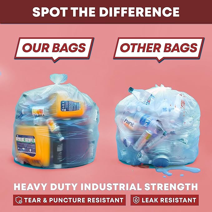 - TRANSPARENT FOR EASY IDENTIFICATION. These 13 gallon clear trash bags let you quickly see what’s inside. Ideal for sorting recyclables, office waste, and commercial use.