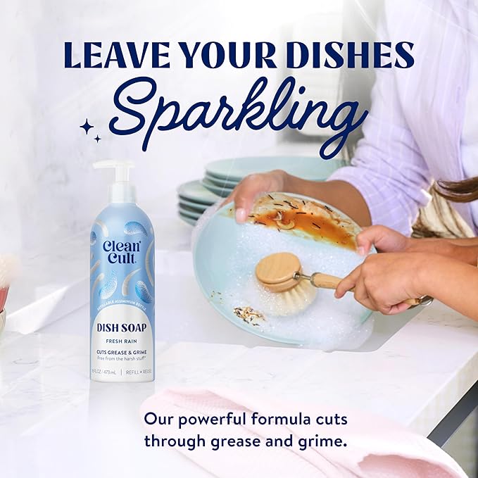 - IN SAFE HANDS: Cleancult liquid dish soap is made from natural ingredients, like aloe and essential oils, and our clear liquid formulas are free from harsh chemicals while being gentle on your skin and the planet.