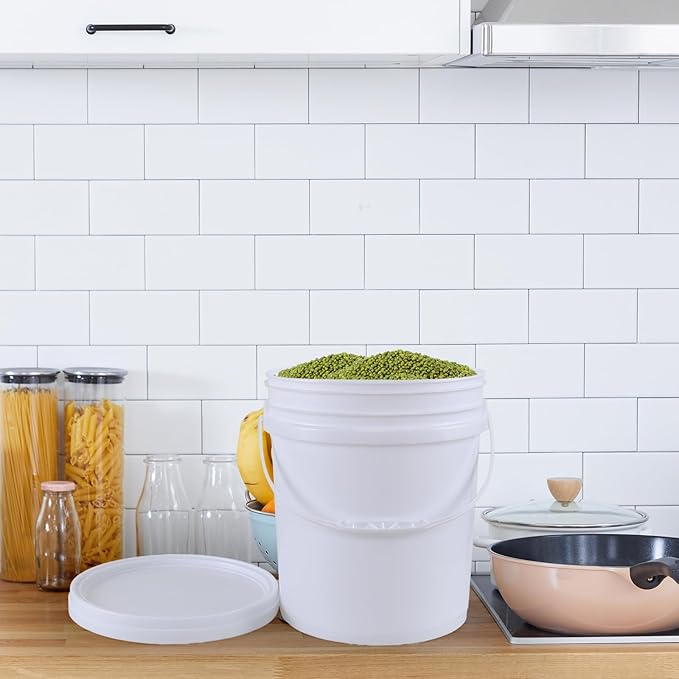 6.6 Gallon White Plastic Bucket with Lid, Round Food Grade Bucket Pail, 4-Pack