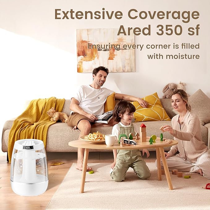 - 💧【3000ml Large Capacity & Large Spray】:Humidifiers with tank capacity is 3000ml, up to 12-18 hours working time. The large volume of 3000ml and the fine spray are used to increase the air humidity. And improve the air quality in a medium sized bedroom, living room or any other rooms.