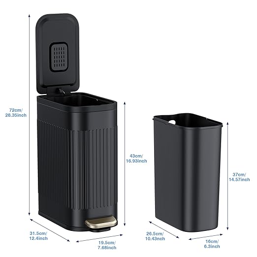 - Removable Plastic Inner Bucket: The bin comes with a removable plastic inner bucket, making it convenient to empty and clean. You can easily take out the inner bucket to dispose of the garbage.