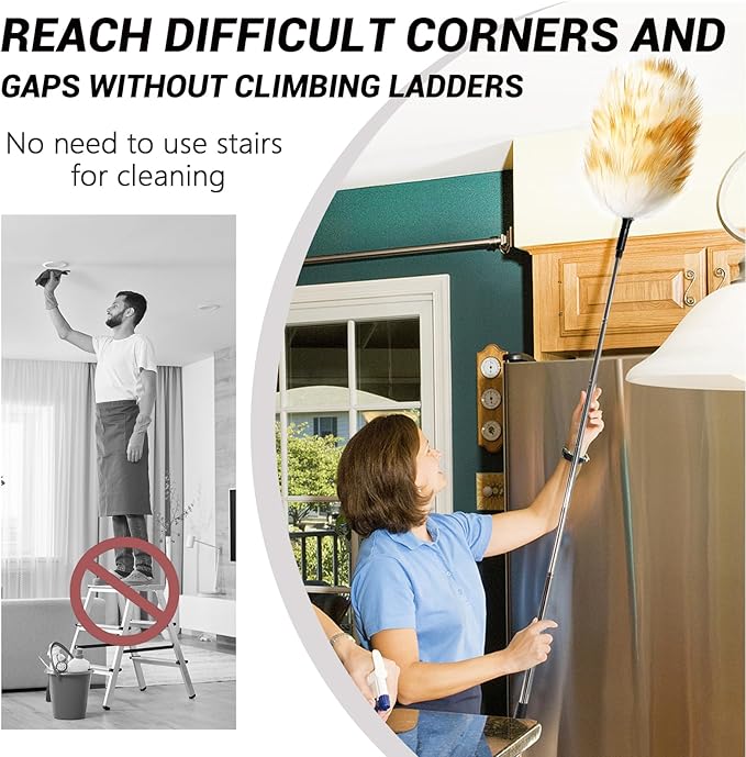 - Selected Premium Wool: NEWONG has meticulously chosen premium wool for the duster, ensuring it is plush and soft while effectively trapping dust. This premium wool not only provides a luxurious feel but also boasts exceptional dust-trapping capabilities. It can remove up to 95% of dust without damaging surfaces.