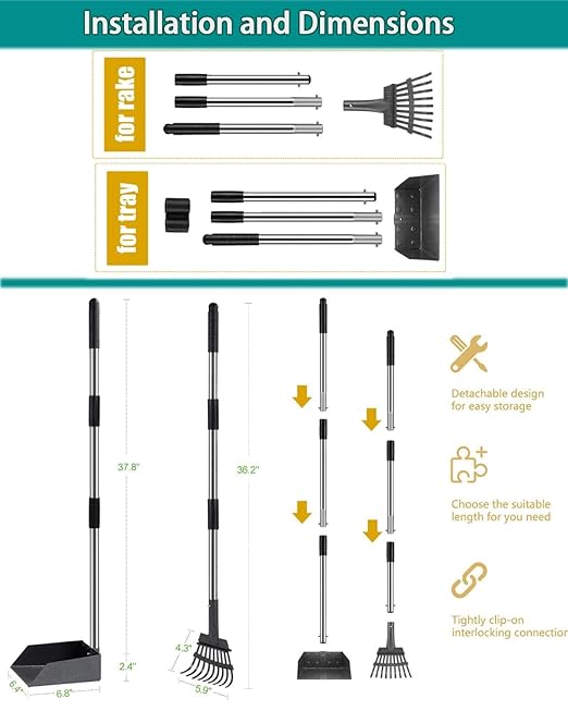 - ✅【For Large Dogs & Yards】Includes a pooper scooper for large dogs with a durable stainless steel rake & tray, making it easy to handle heavy-duty cleanup in multi-dog households and spacious yards.